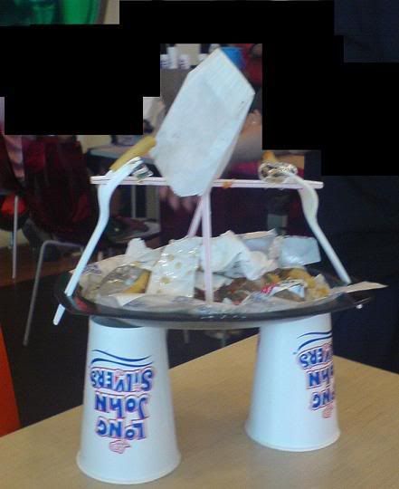 One day during the preparations for StrITwise.. we went to Long John Silver's to have lunch. Yuanyuan said the Treasure Meal thingy was v yucky, we each had a taste of it too.. it really wasn't nice to eat at all..reminded me of yucky cold cooked orange skin.. So, her meal was totally wasted. I finished eating, and there wasn't anything much to do there, I used the trash to create this piece of art! After we went out of LJS, I waited to see the worker's reaction when she was going to clean the table. Her expression was "O_O WTF?!" http://i6.photobucket.com/albums/y212/tenipuri_prodigy/MASTERPIECE.jpg